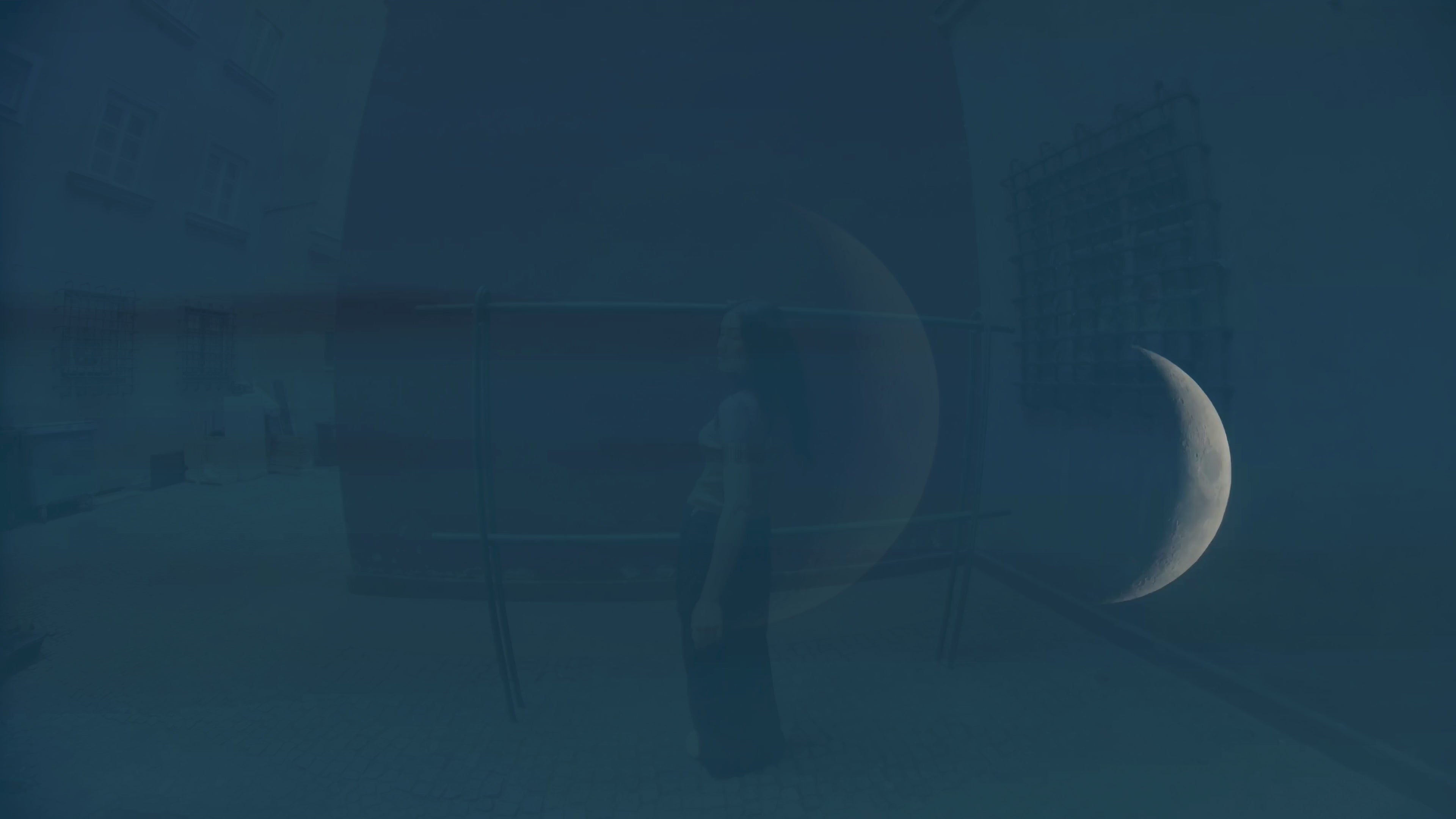 150cm height woman walking on a city street wearing a black sweater, light blue jeans, and sunglasses.